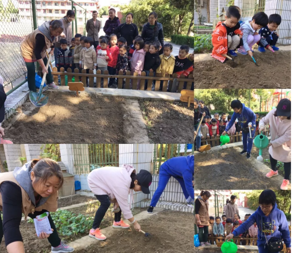《3~6歲兒童學習與發(fā)展指南》中指出:我們要支持幼兒在接觸自然、生活事物和現(xiàn)象中積累有益的直接經(jīng)驗和感性認識。大自然是豐富多彩的,而小菜園只是其中細微的一部分,是大自然的縮影。為此,我們小班的寶寶們跟隨媽媽、奶奶們一起來到了屬于我們的小菜地,他們用稚嫩的小手努力拔草,用小鏟子用力翻土、雙手捧著種子向前揮灑、按壓灑水壺澆水,小菜地里充滿了歡聲笑語。