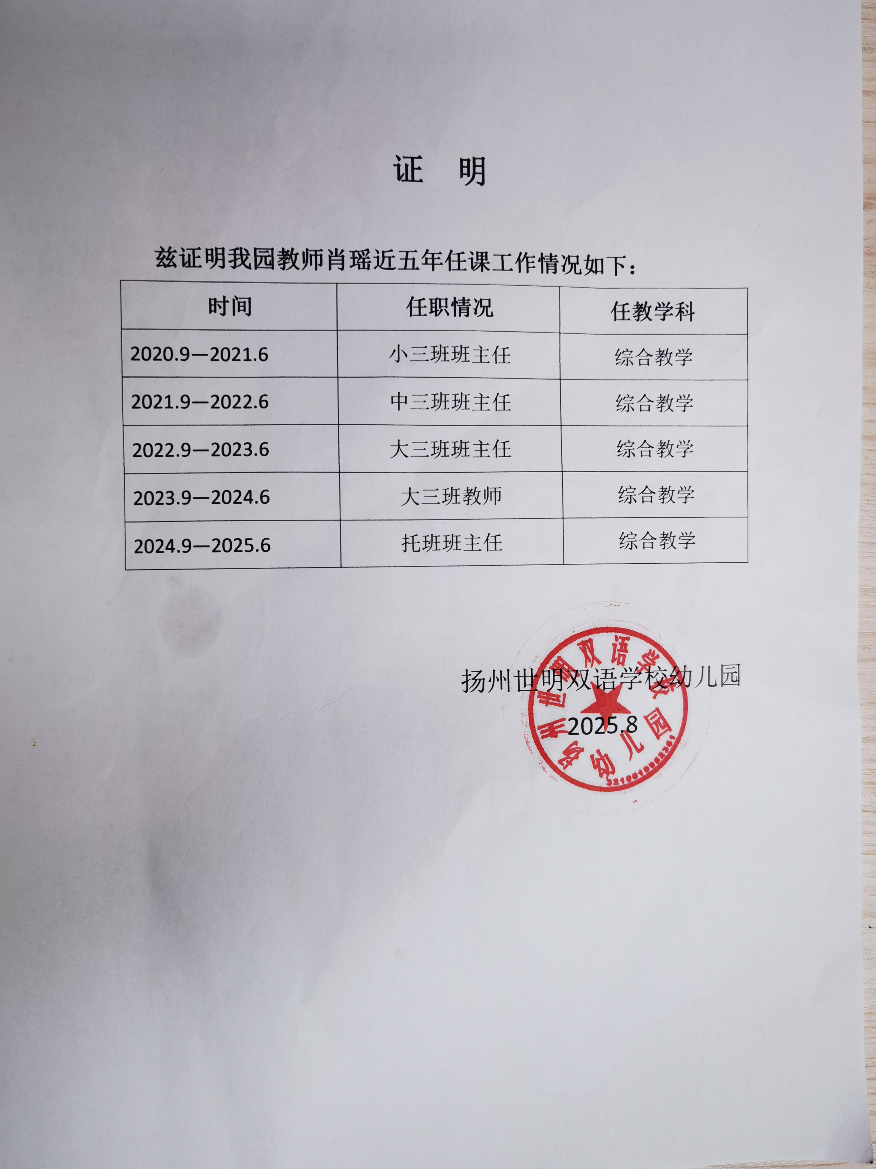教師任職證明