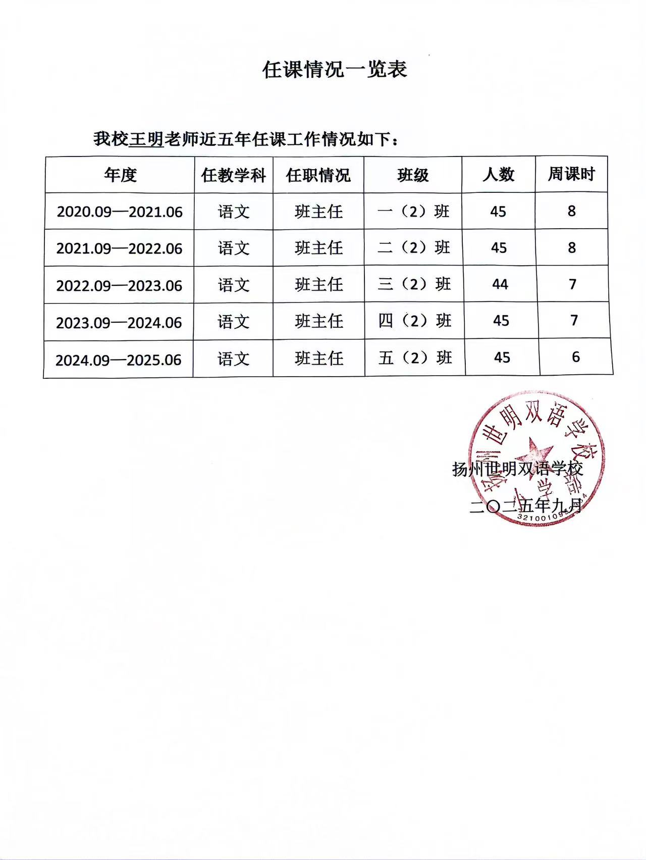 教師任職證明