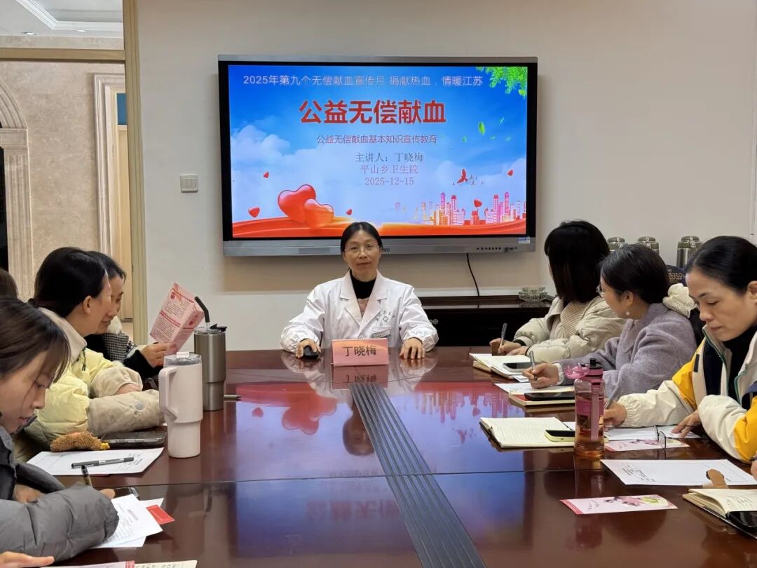 ???在無償獻(xiàn)血月宣傳講座部分,平山鄉(xiāng)衛(wèi)生院的丁醫(yī)生對無償獻(xiàn)血政策進(jìn)行了專業(yè)解讀,清晰闡述了獻(xiàn)血的益處以及校園宣傳的重點(diǎn)要點(diǎn)。老師們了解到無償獻(xiàn)血不僅是奉獻(xiàn)愛心的方式,更是對社會(huì)公益事業(yè)的有力支持,也明確了在園內(nèi)開展無償獻(xiàn)血宣傳的方向與方法。