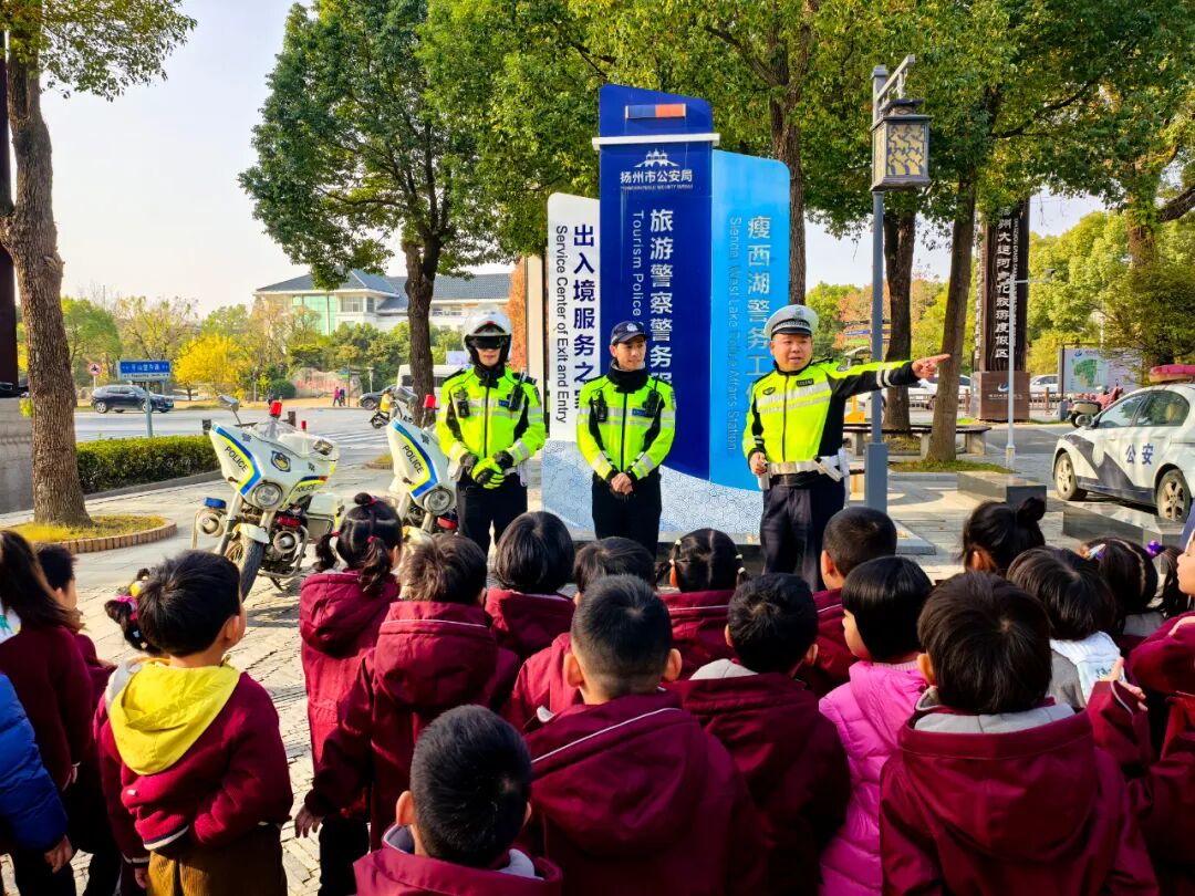 ? ?在維揚崗交警崗亭,孩子們睜大眼睛,好奇地觀察交警叔叔的制服、裝備和帥氣的警車。“這個背心晚上會發(fā)光,好厲害!”“摩托車真的好酷!”一聲聲驚嘆,滿是對交警職業(yè)的敬佩。